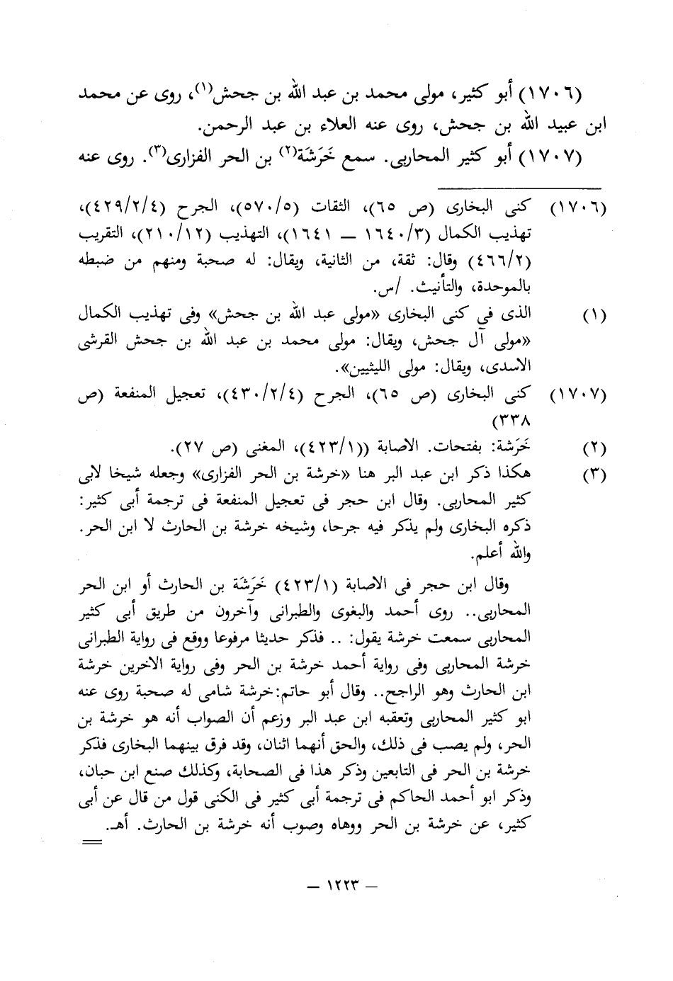 1707 - أبو كثير المحاربى. سمع خَرَشَة (¬2) بن الحر الفزارى (¬3). روى عنه