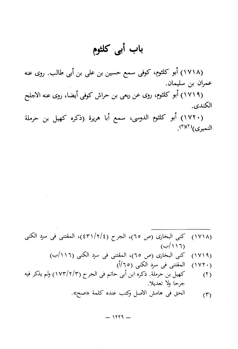 1719 - كنى البخارى (ص 65)، المقتنى في سرد الكنى (116/ ب).