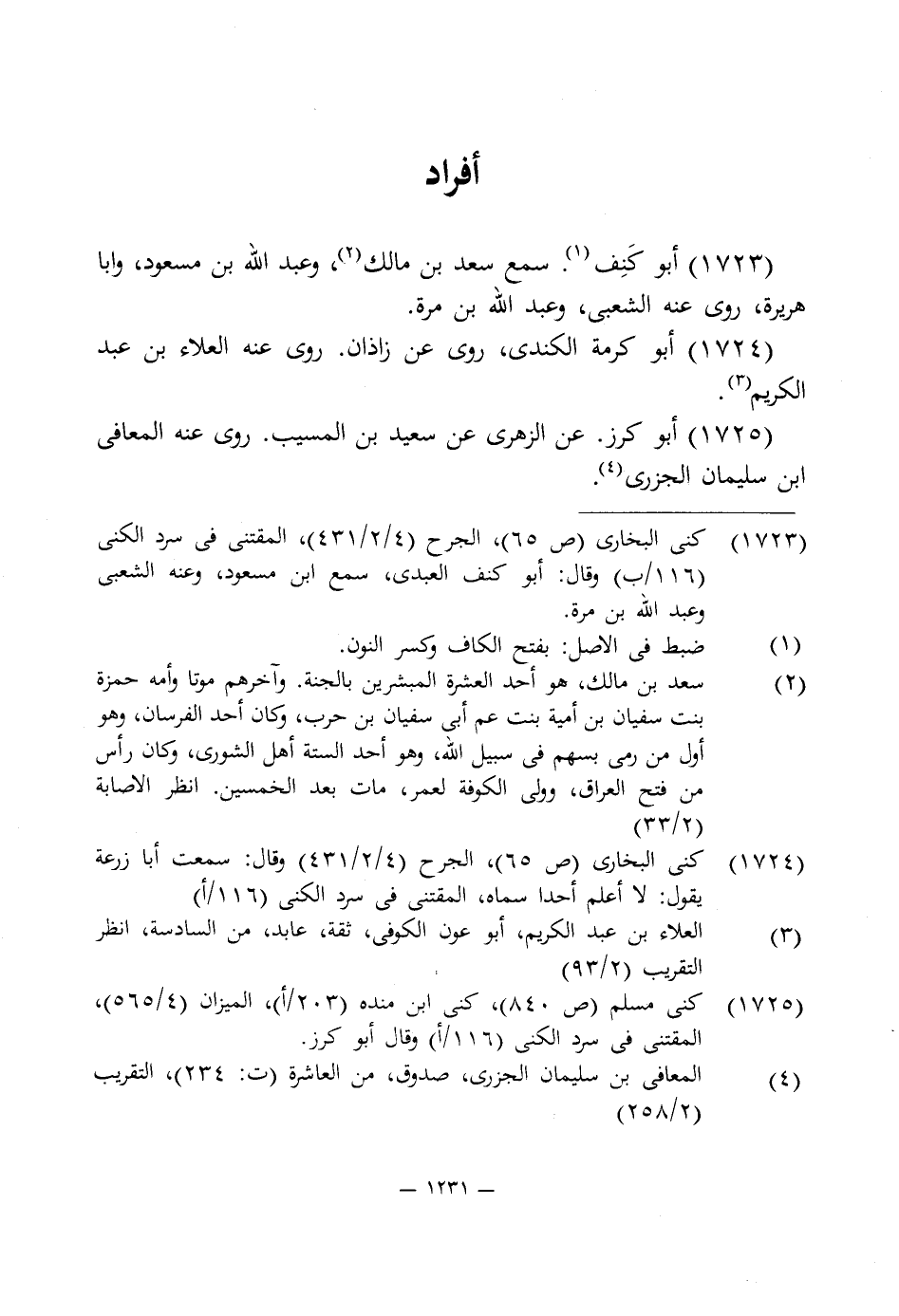1723 - أبو كَنِف (¬1). سمع سعد بن مالك (¬2)، وعبد اللَّه بن مسعود، وأبا هريرة، روى عنه الشعبى، وعبد اللَّه بن مرة.