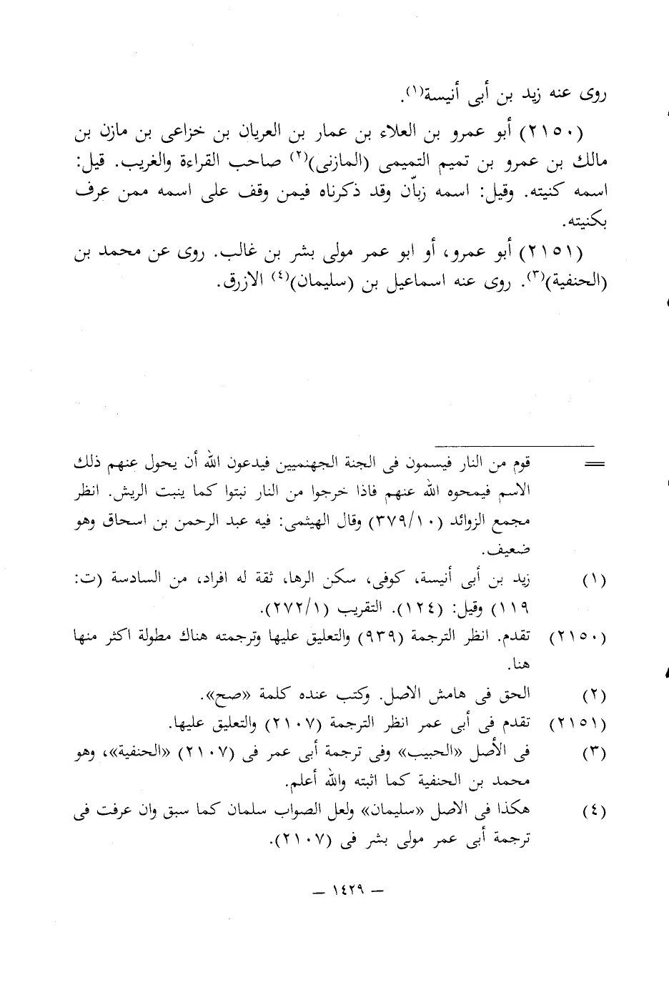 2150 - أبو عمرو بن العلاء بن عمار بن العريان بن خزاعى بن مازن بن مالك بن عمرو بن تميم التميمى (المازنى) (¬2) صاحب القراءة والغريب. قيل: اسمه كنيته. وقيل: اسمه زبّان وقد ذكرناه فيمن وقف على اسمه ممن عرف بكنيته.