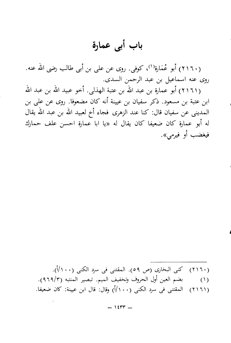 2160 - كنى البخارى (ص 59). المقتنى في سرد الكنى (100/ أ).