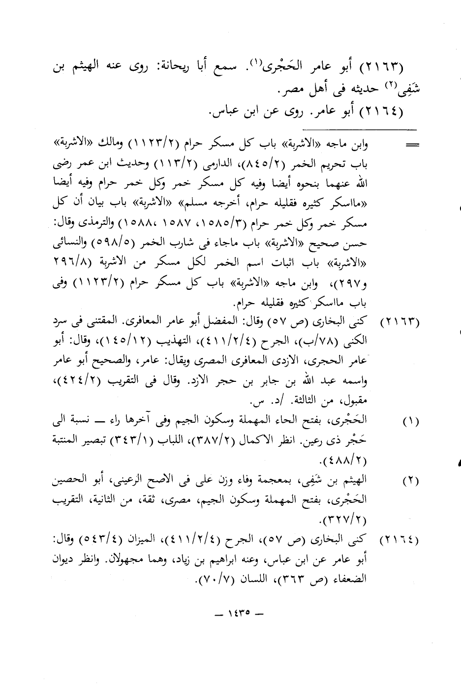 2164 - كنى البخارى (ص 57)، الجرح (2/ 1/ 411)، الميزان (4/ 543) وقال: أبو عامر عن ابن عباس، وعنه إبراهيم بن زياد، وهما مجهولان. وانظر ديوان الضعفاء (ص 363)، اللسان (7/ 70).