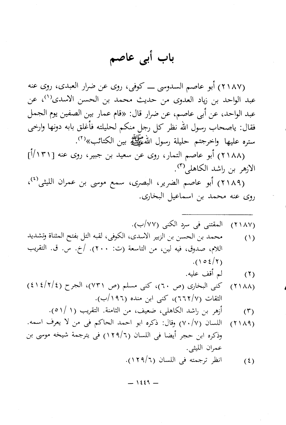 2188 - أبو عاصم التمار، روى عن سعيد بن جبير، روى عنه الأزهر بن راشد الكاهلى (¬3).