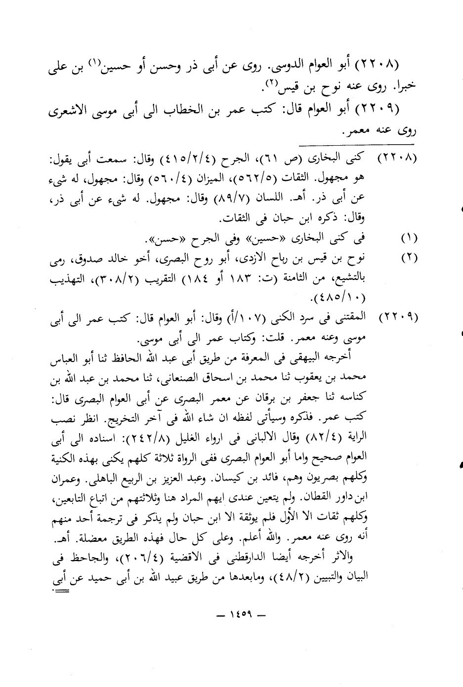 2209 - أبو العوام قال: كتب عمر بن الخطاب إلى أبى موسى الاشعرى روى عنه معمر.