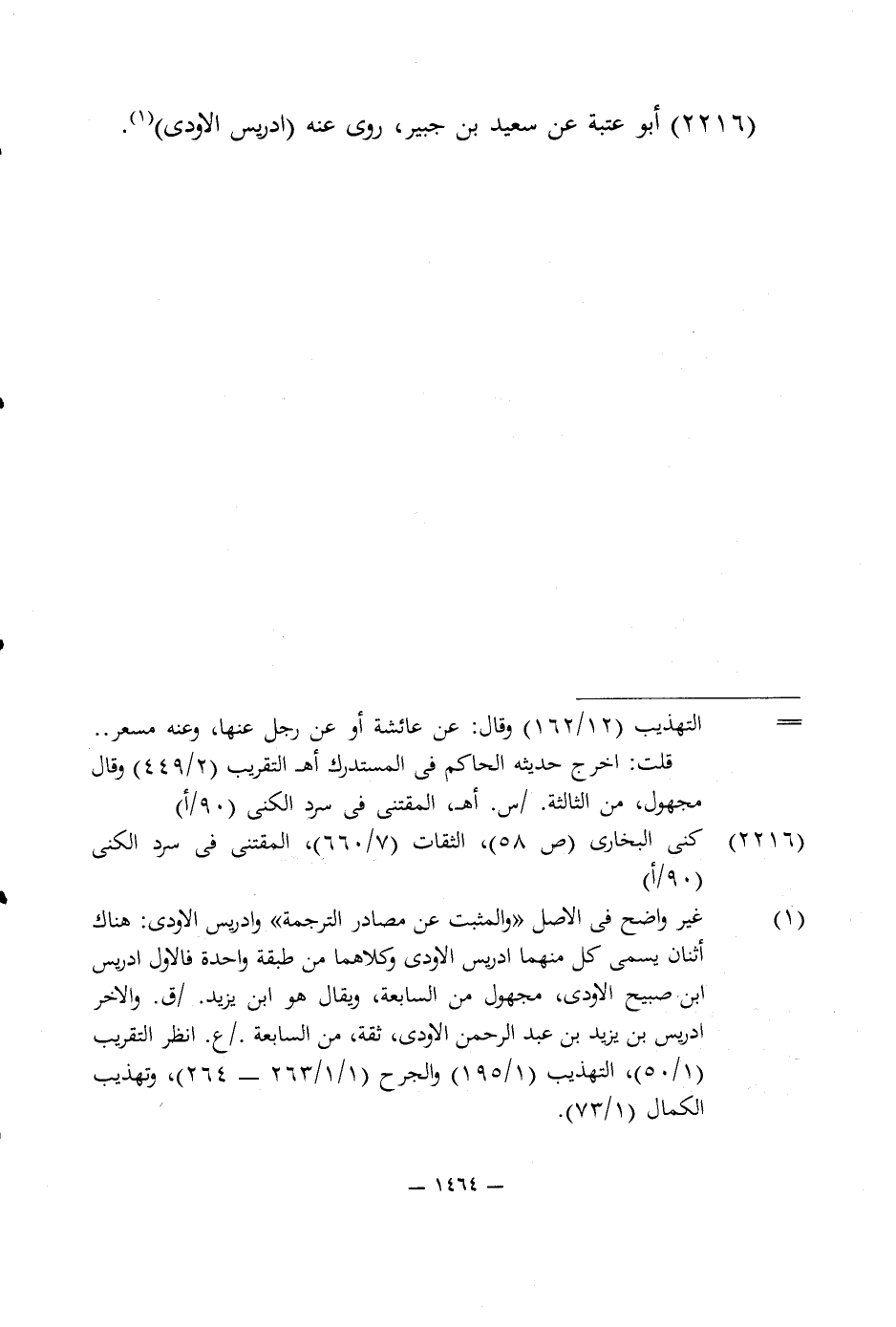 2216 - أبو عتبة عن سعيد بن جبير، روى عنه (ادريس الاودى) (¬1).