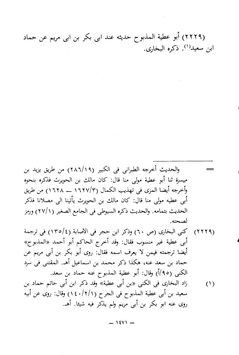 (¬1) زاد البخارى في الكنى "بن أبى عطية" وقد ذكر ابن أبى حاتم حماد بن سعيد بن أبى عطية المذبوح في الجرح (1/ 2/ 140) وقال: روى عن أبيه روى عنه أبو بكر بن أبى مريم ولم يذكر فيه شيئا. اهـ.