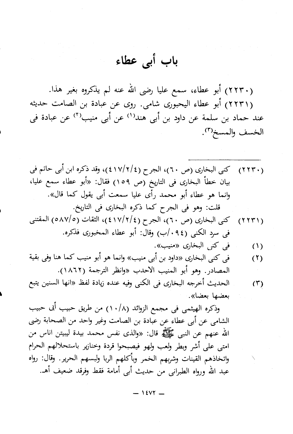 2231 - أبو عطاء اليحبورى شامى. روى عن عبادة بن الصامت حديثه عند حماد بن سلمة عن داود بن أبى هند (¬1) عن أبى منيب (¬2) عن عبادة في الخسف والمسخ (¬3).
