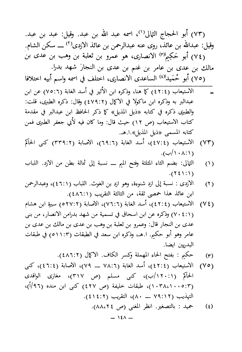 73 - الاستيعاب (4: 47)، أسد الغابة (6: 69)، الإصابة (2: 339) كنى الحاكم (1: 108/ ب).