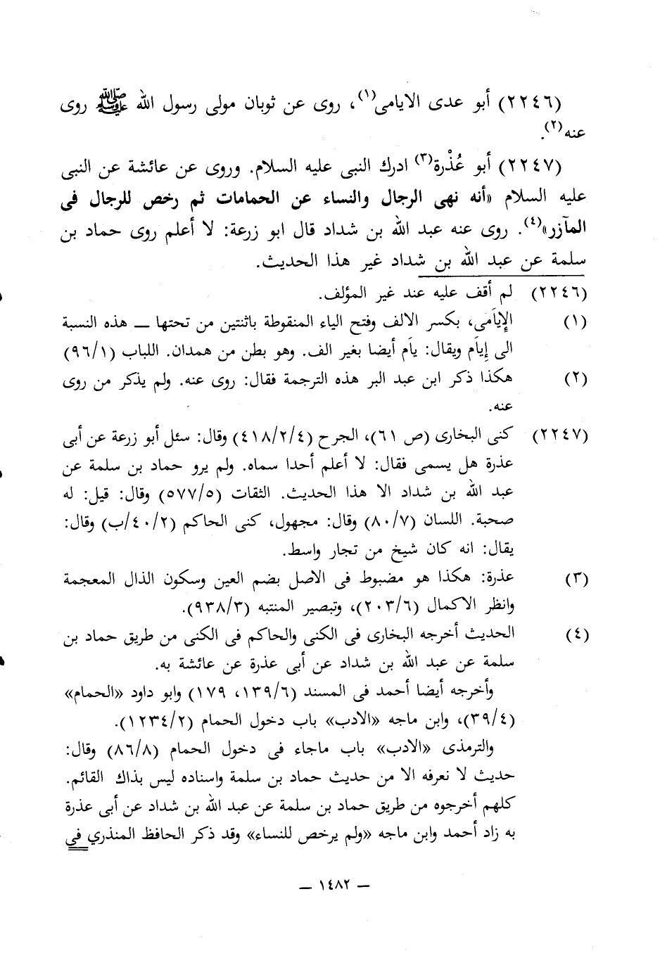 2247 - أبو عُذْرة (¬3) أدرك النبى عليه السلام. وروى عن عائشة عن النبى عليه السلام "أنه نهى الرجال والنساء عن الحمامات ثم رخص للرجال في المآزر" (¬4). روى عنه عبد اللَّه بن شداد قال أبو زرعة: لا أعلم روى حماد بن سلمة عن عبد اللَّه بن شداد غير هذا الحديث.
