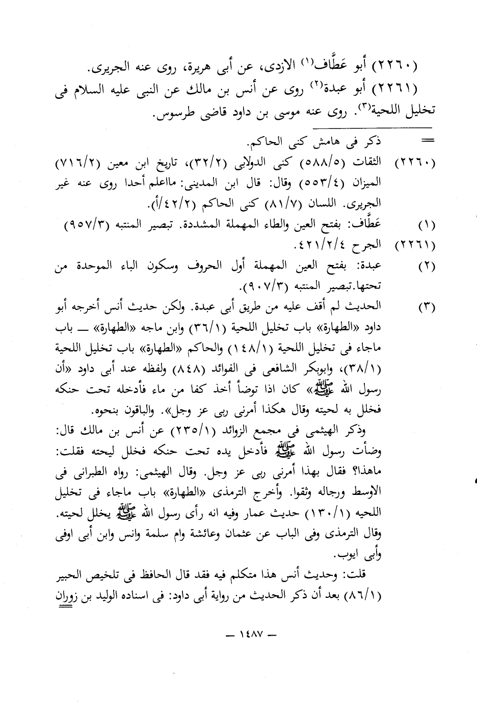 2261 - أبو عبدة (¬2) روى عن أنس بن مالك عن النبى عليه السلام في تخليل اللحية (¬3). روى عنه موسى بن داود قاضى طرسوس.