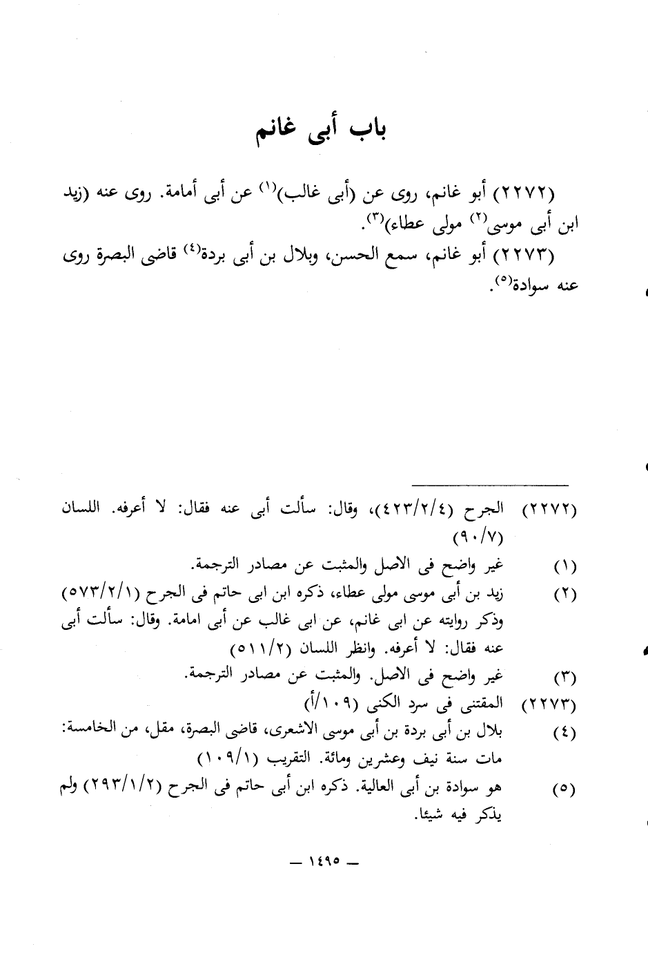 2273 - أبو غانم، سمع الحسن، وبلال بن أبى بردة (¬4) قاضى البصرة روى عنه سوادة (¬5).