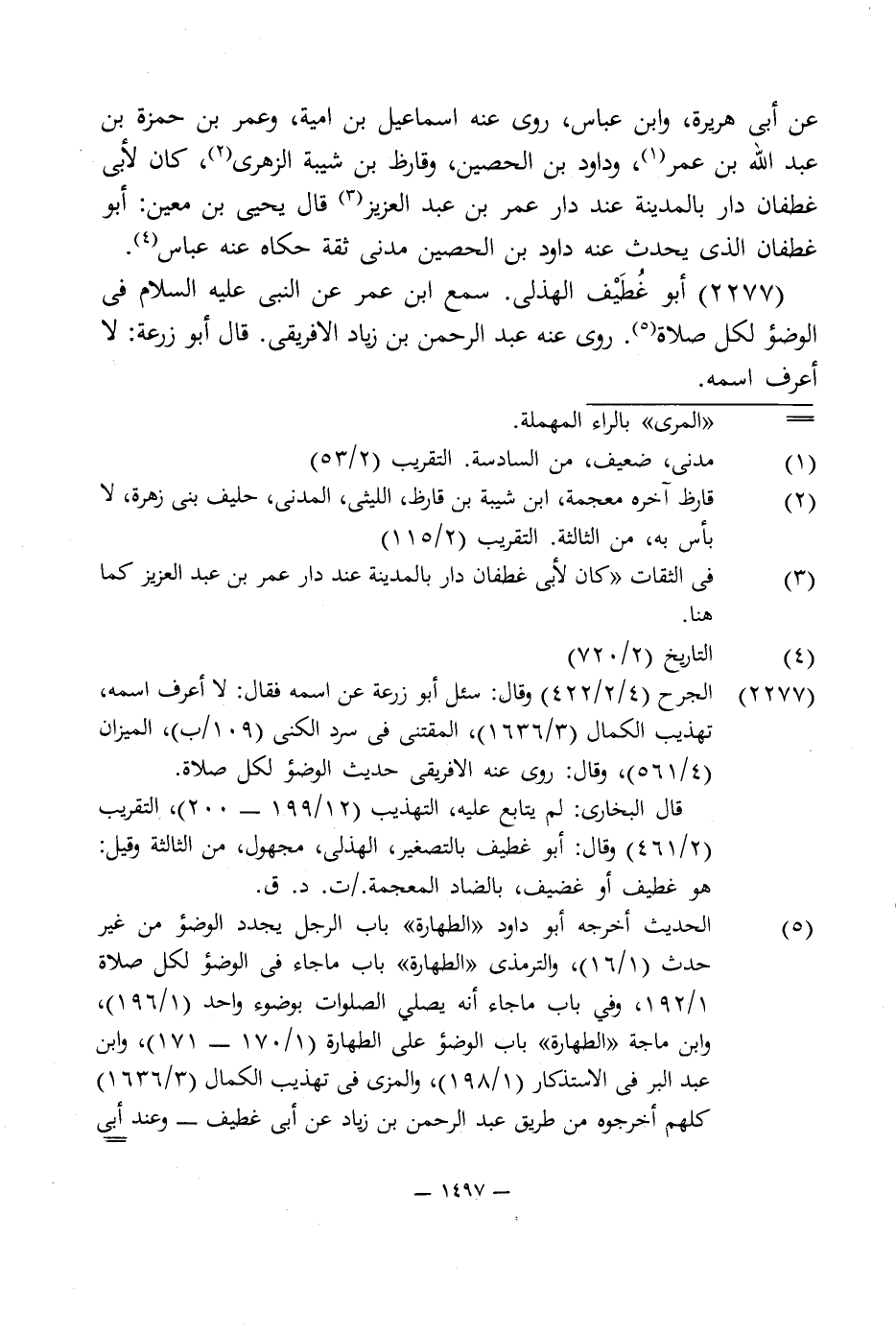2277 - أبو غُطَيْف الهذلى. سمع ابن عمر عن النبى عليه السلام في الوضوء لكل صلاة (¬5). روى عنه عبد الرحمن بن زياد الافريقى. قال أبو زرعة: لا أعرف اسمه.