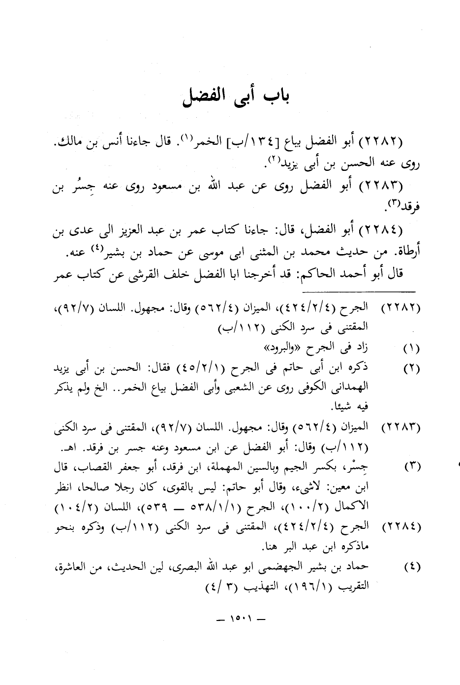 2283 - الميزان (4/ 562) وقال: مجهول. اللسان (7/ 92)، المقتنى في سرد الكنى (112/ ب) وقال: أبو الفضل عن ابن مسعود وعنه جسر بن فرقد. اهـ.