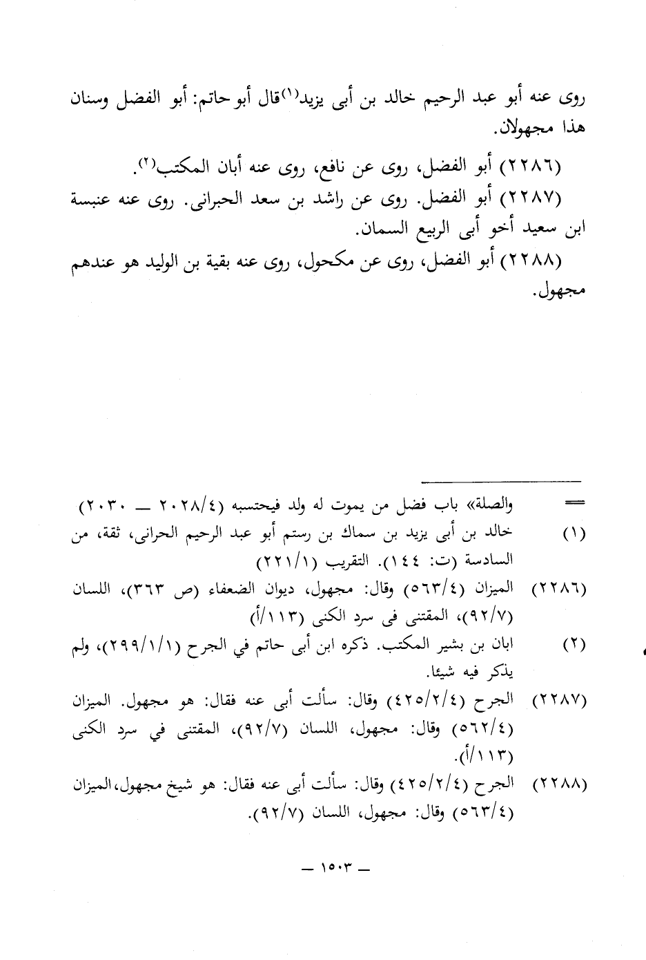 2288 - أبو الفضل، روى عن مكحول، روى عنه بقية بن الوليد هو عندهم مجهول.