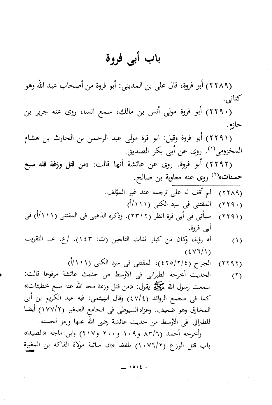 2289 - أبو فروة، قال على بن المدينى: أبو فروة من أصحاب عبد اللَّه وهو كنانى.