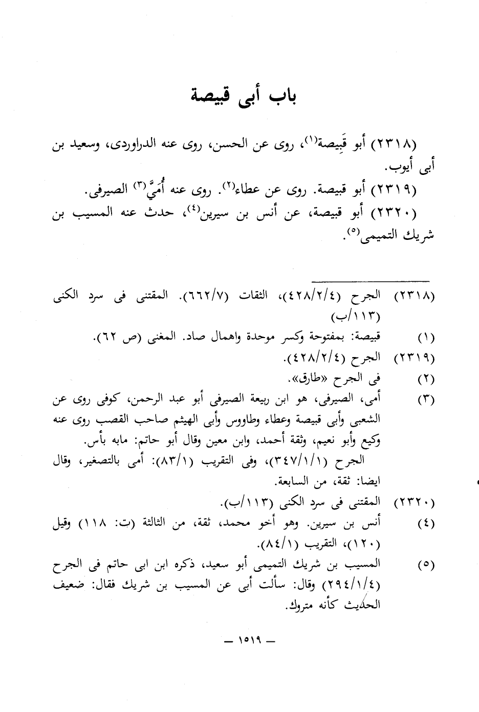 (¬1) قبيصة: بمفتوحة كسر موحدة واهمال صاد. المغنى (ص 62).