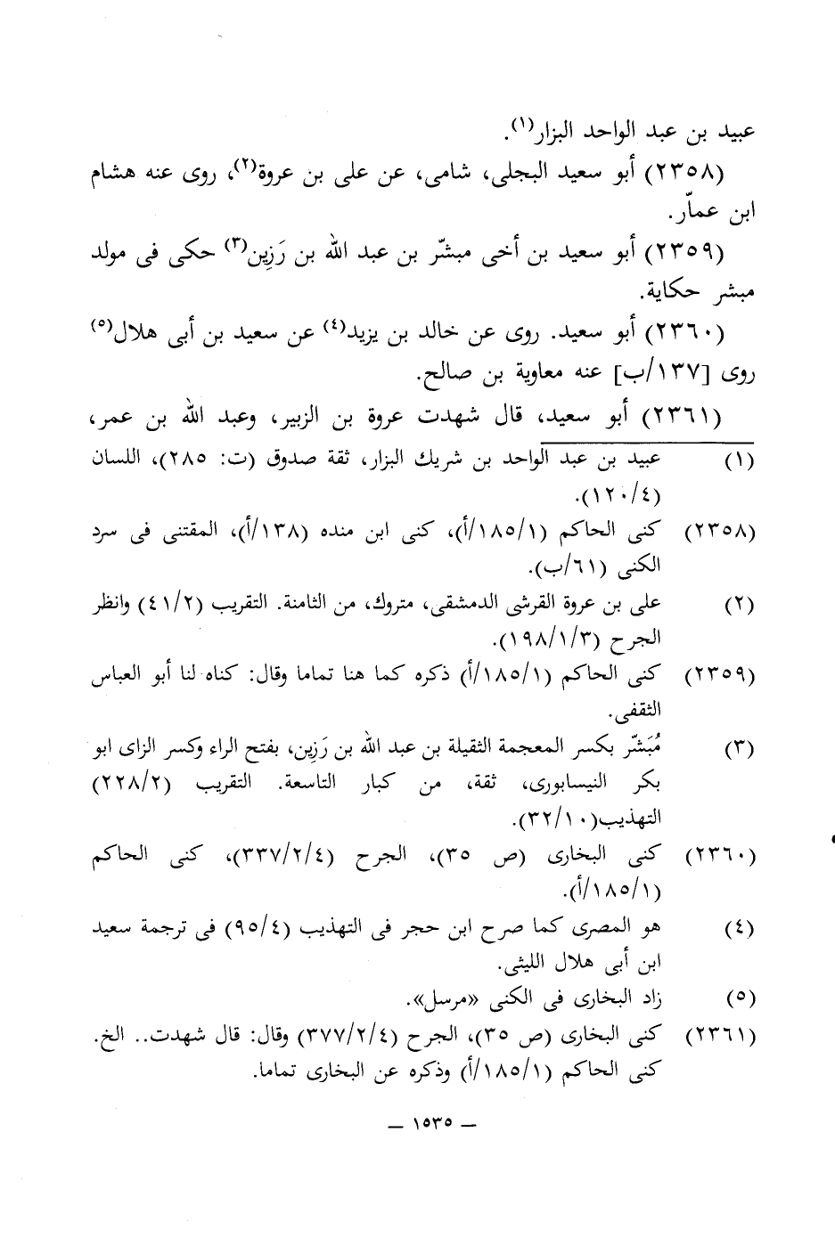 2358 - أبو سعيد البجلى، شامى، عن على بن عروة (¬2)، روى عنه هشام ابن عمّار.