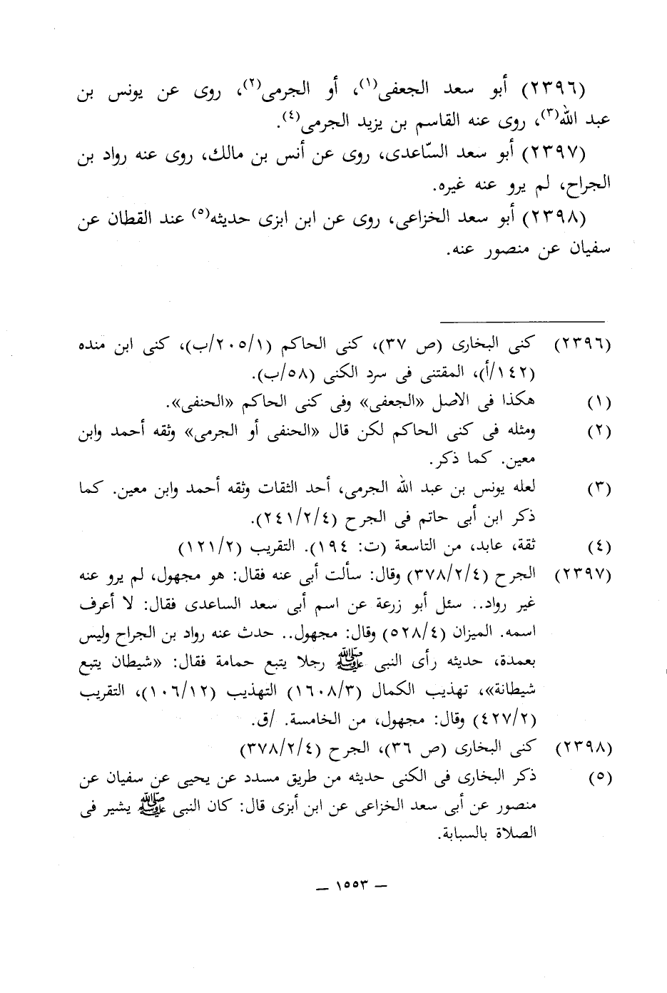 2396 - أبو سعد الجعفى (¬1)، أو الجرمى (¬2)، روى عن يونس بن عبد اللَّه (¬3)، روى عنه القاسم بن يزيد الجرمى (¬4).