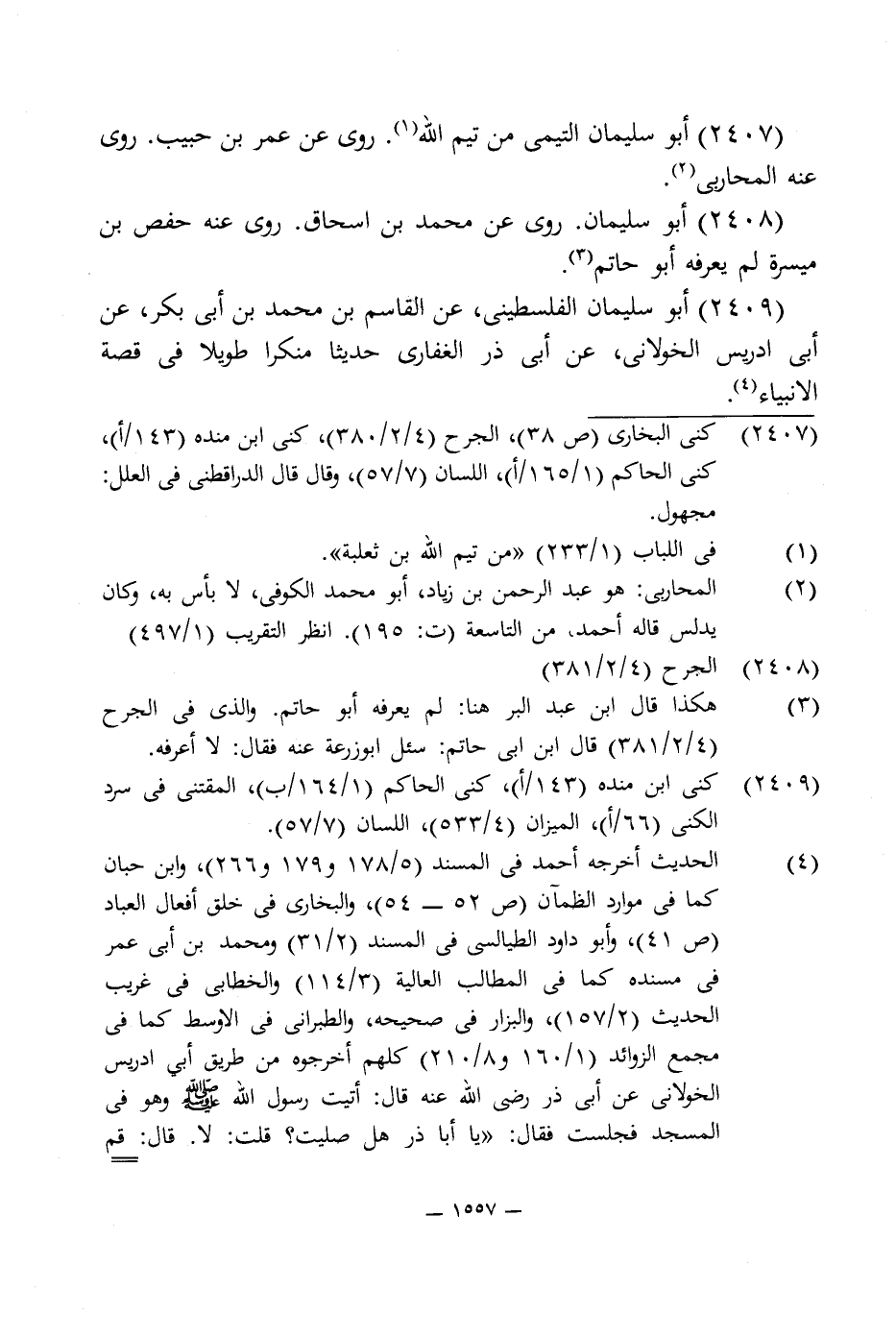 2407 - كنى البخارى (ص 38)، الجرح (4/ 2/ 380)، كنى ابن منده (143/ أ)، كنى الحاكم (1/ 165/ أ)، اللسان (7/ 57)، وقال قال الدارقطنى في العلل: مجهول.