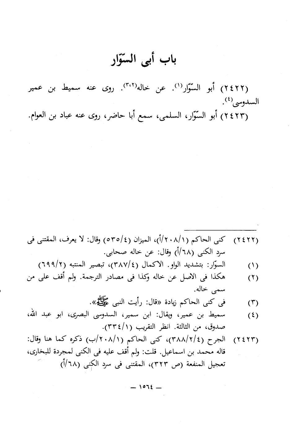 2422 - أبو السّوّار (¬1). عن خاله (¬2) , (¬3). روى عنه سميط بن عمير السدوسى (¬4).