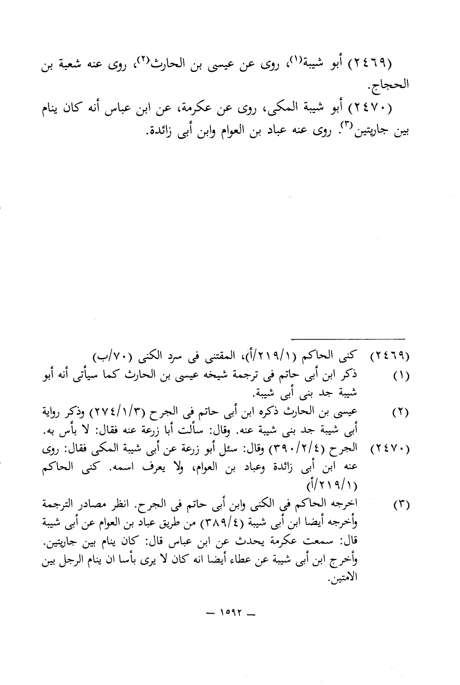2470 - أبو شيبة المكى، روى عن عكرمة، عن ابن عباس أنه كان ينام بين جاريتين (¬3). روى عنه عباد بن العوام وابن أبى زائدة.