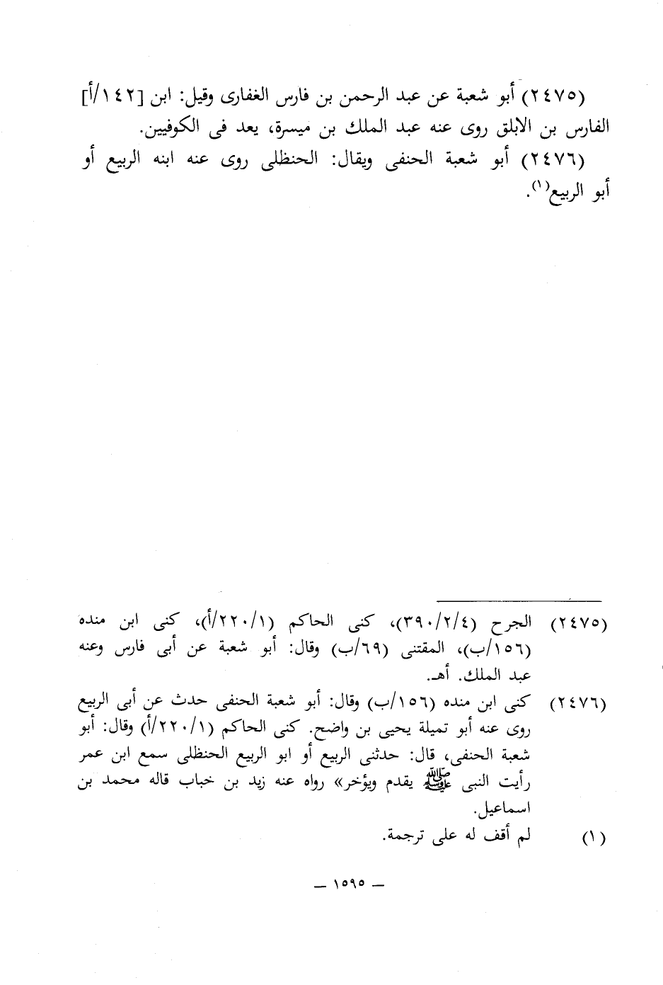 2475 - الجرح (4/ 2/ 390)، كنى الحاكم (1/ 220/ أ)، كنى ابن منده (56/ ب)، المقتنى (69/ ب) وقال: أبو شعبة عن أبى فارس وعنه عبد الملك. اهـ.