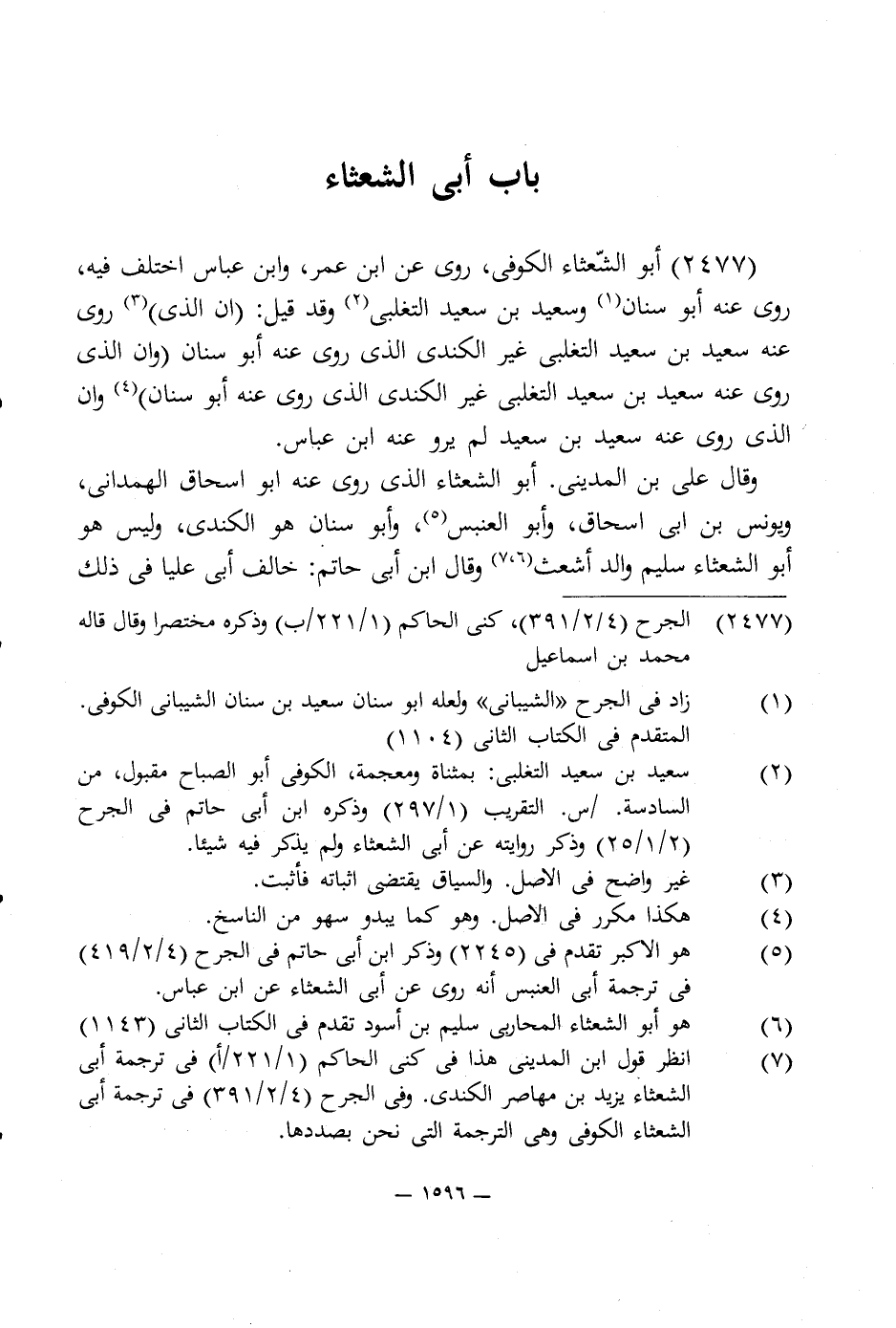 (¬7) انظر قول ابن المدينى هذا في كنى الحاكم (1/ 221/ أ) في ترجمة أبى الشعثاء يزيد بن مهاصر الكندى. وفى الجرح (4/ 2/ 391) في ترجمة أبى الشعثاء الكوفى وهى الترجمة التى نحن بصددها.