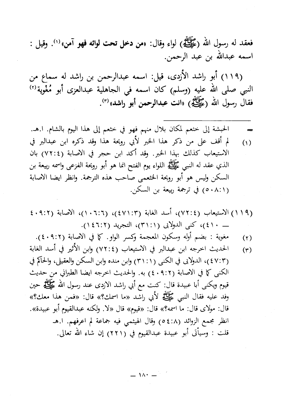 119 - الاستيعاب (4: 72)، أسد الغابة (3: 471)، (6: 106)، الإصابة (2: 409 - 410)، كنى الدولابى (1: 31)، التجريد (2: 146).