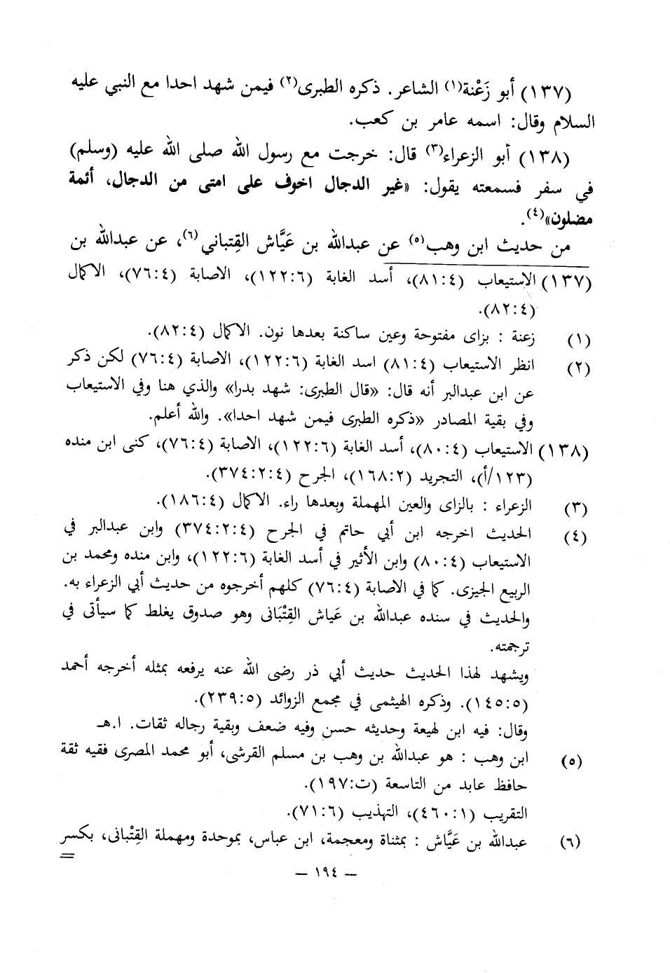 (¬4) الحديث أخرجه ابن أبى حاتم في الجرح (4: 2: 374) وابن عبد البر في الاستيعاب (4: 80) وابن الأثير في أسد الغابة (6: 122)، وابن منده ومحمد بن الربيع الجيزى. كما في الإصابة (4: 76) كلهم أخرجوه من حديث أبى الزعراء به. والحديث في سنده عبد اللَّه بن عَياش القِتْبَانى وهو صدوق يغلط كما سيأتى في ترجمته.