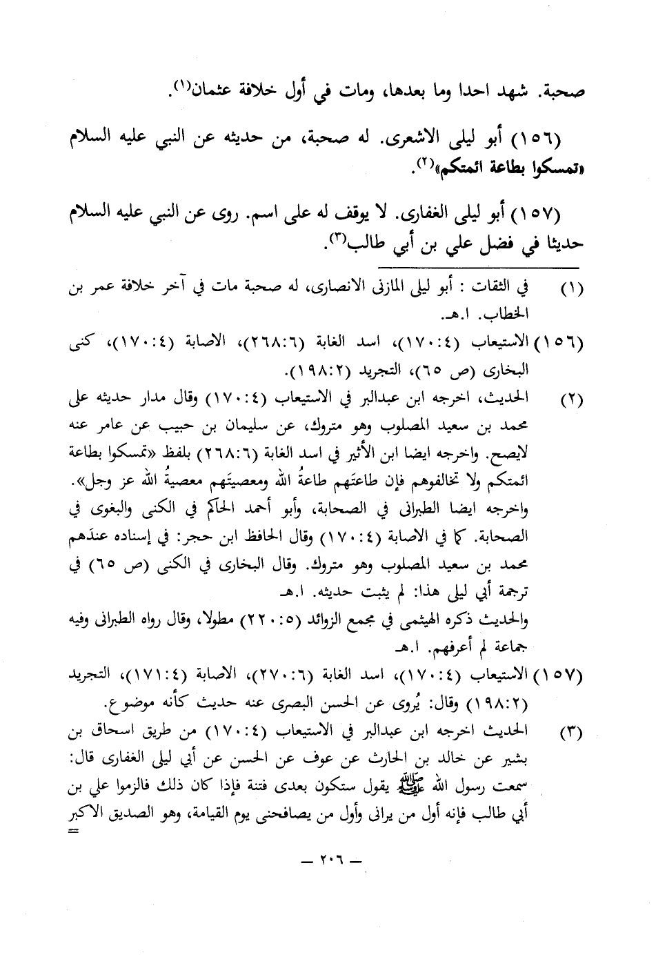 156 - أبو ليلى الاشعرى. له صحبة، من حديثه عن النبى عليه السلام "تمسكوا بطاعة أئمتكم" (¬2).