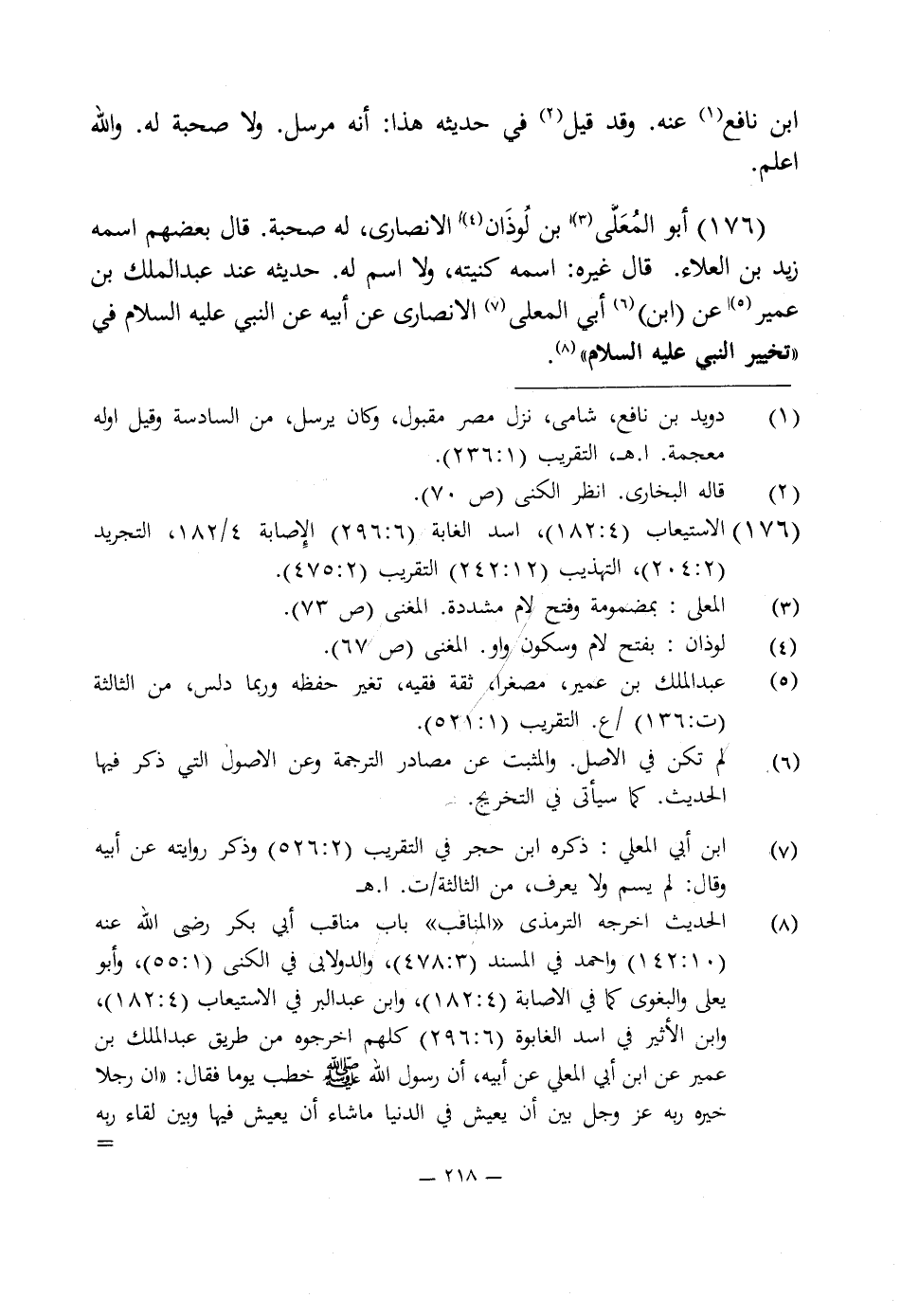 (¬7) ابن أبى المعلى: ذكره ابن حجر في التقريب (2: 526) وذكر روايته عن أبيه وقال: لم يسم ولا يعرف، من الثالثة/ ت. ا. هـ