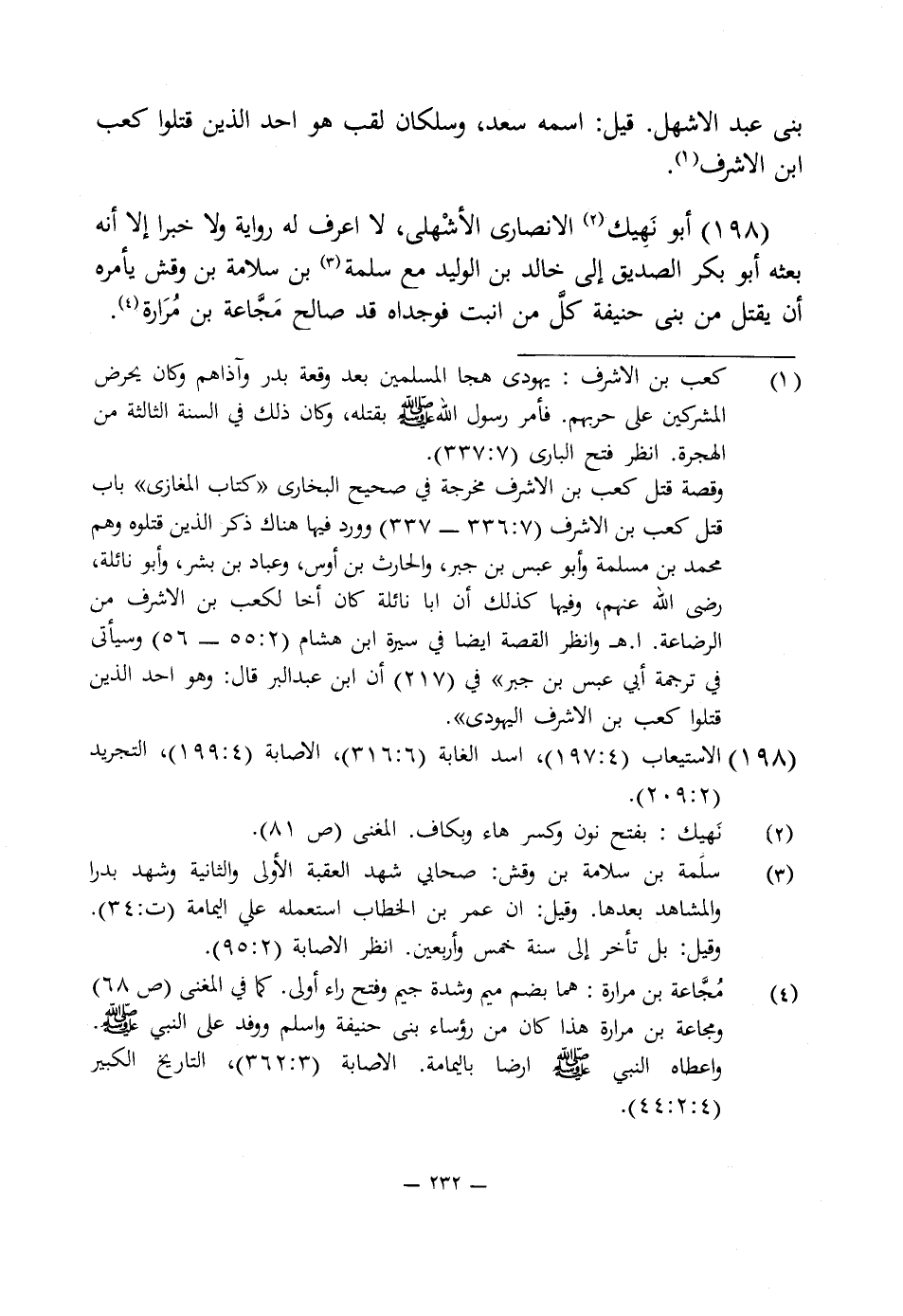 (¬1) كعب بن الأشرف: يهودى هجا المسلمين بعد وقعة بدر وآذاهم وكان يحرض المشركين على حربهم. فأمر رسول اللَّه -صلى اللَّه عليه وسلم- بقتله، وكان ذلك في السنة الثالثة من الهجرة. انظر فتح البارى (7: 337).
