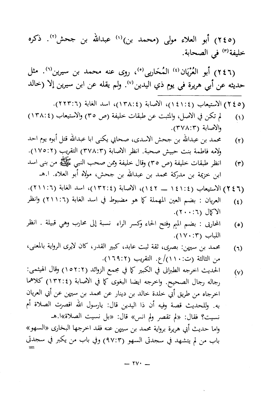 246 - أبو العُرْيَان (¬4) المُحَاربى (¬5)، روى عنه محمد بن سيرين (¬6). مثل حديثه عن أبى هريرة في يوم ذى اليدين (¬7). ولم يقله عن ابن سيرين إلا (خالد