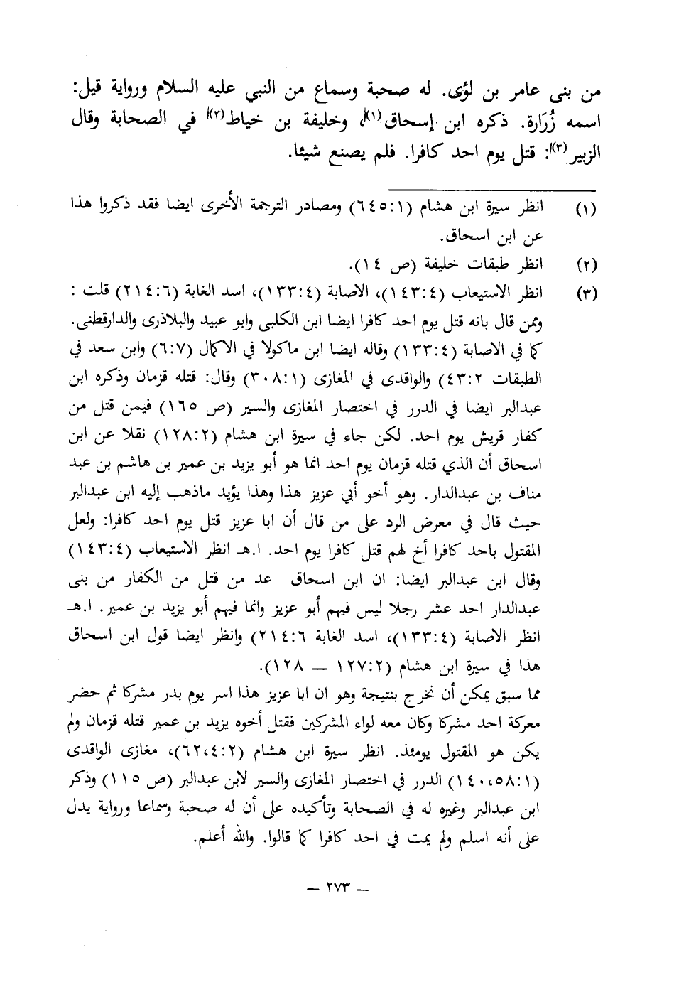 (¬3) انظر الاستيعاب (4: 143)، الإصابة (4: 133)، أسد الغابة (6: 214) قلت: وممن قال بأنه قتل يوم احد كافرا أيضا ابن الكلبى وأبو عبيد والبلاذرى والدارقطنى.