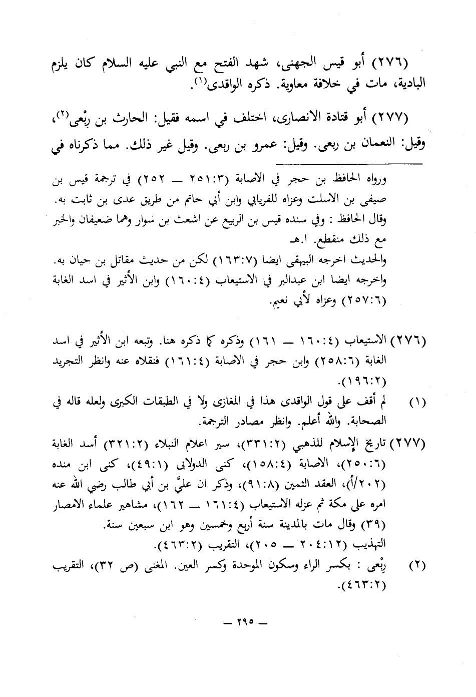 277 - أبو قتادة الأنصارى، اختلف في اسمه فقيل: الحارث بن رِبْعى (¬2)، وقيل: النعمان بن ربعى. وقيل: عمرو بن ربعى. وقيل غير ذلك. مما ذكرناه في