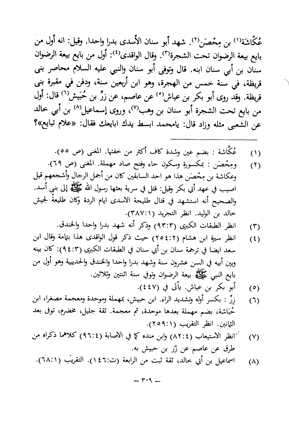 (¬6) زِرِّ: بكسر أوله وتشديد الراء. ابن حبيش، بمهملة وموحدة ومعجمة مصغرا، ابن حُبَاشة، بضم مهملة بعدها موحدة، ثم معجمة. ثقة جليل، مخضرم، توفى بعد الثمانين. انظر التقريب (1: 259).
