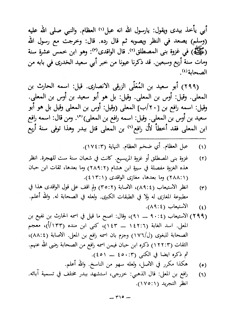 (¬6) رافع بن المعلى: قال الذهبى: خزرجى، استشهد ببدر مختلف في تسمية آبائه. انظر التجريد (1: 175).