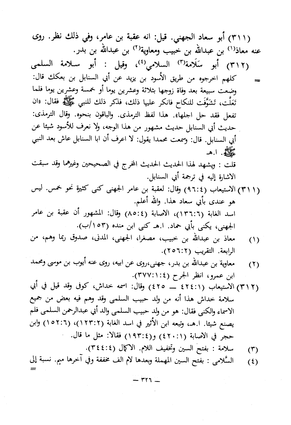 311 - الاستيعاب (4: 96) وقال: لعقبة بن عامر الجهنى كنى كثيرة نحو خمس. ليس هو عندى بأبى سعاد هذا. واللَّه أعلم.