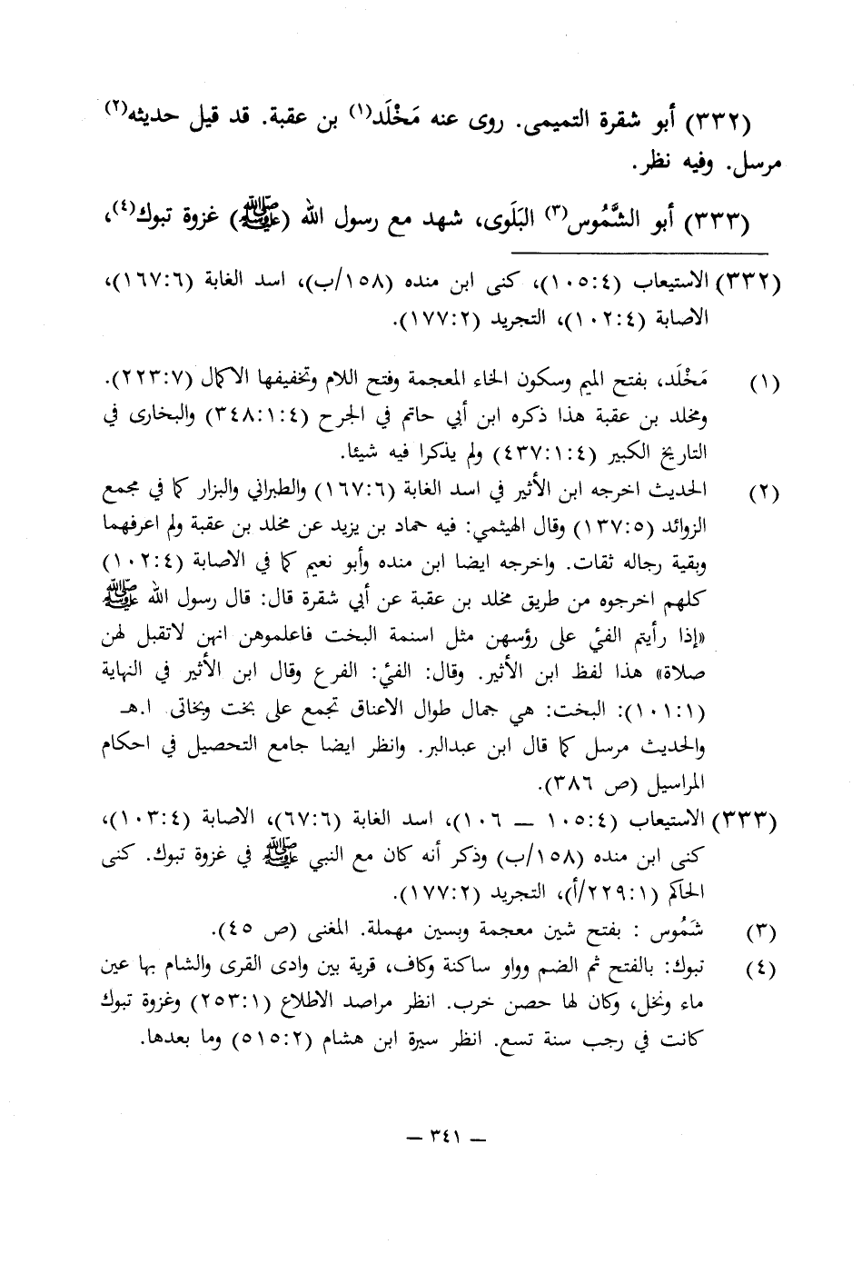 333 - الاستيعاب (4: 105 - 106)، أسد الغابة (6: 67)، الإصابة (4: 103)، كنى ابن منده (158/ ب) وذكر أنه كان مع النبى -صلى اللَّه عليه وسلم- في غزوة تبوك. كنى الحاكم (1: 229/ أ)، التجريد (2: 177).