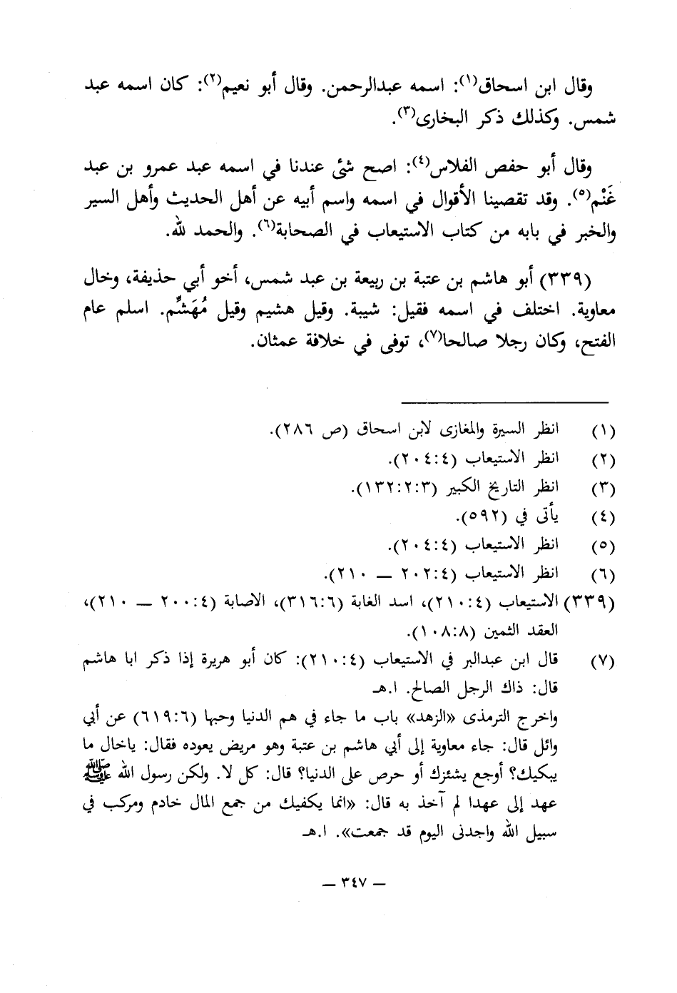 (¬7) قال ابن عبد البر في الاستيعاب (4: 210): كان أبو هريرة إذا ذكر أبا هاشم قال: ذاك الرجل الصالح. ا. هـ
