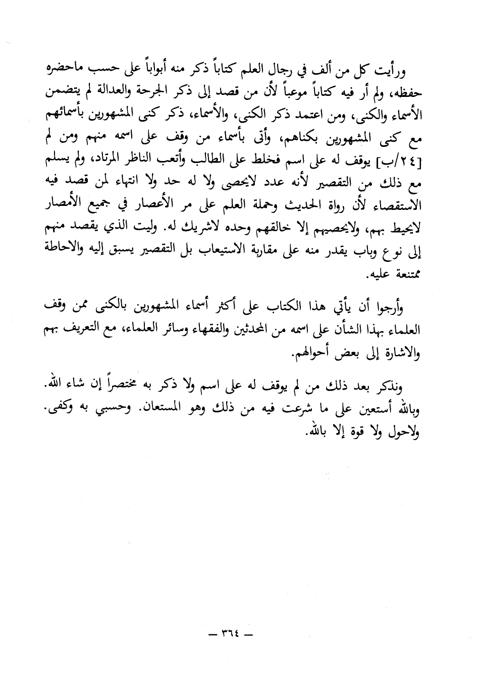 وأرجوا أن يأتى هذا الكتاب على أكثر أسماء المشهورين بالكنى ممن وقف العلماء بهذا الشأن على اسمه من المحدثين والفقهاء وسائر العلماء، مع التعريف بهم والاشارة إلى بعض أحوالهم.