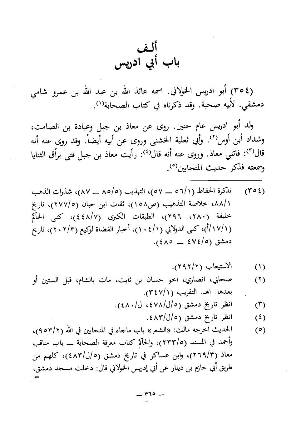 354 - أبو ادريس الخولانى. اسمه عائذ اللَّه بن عبد اللَّه بن عمرو شامى دمشقى. لأبيه صحبة. وقد ذكرناه في كتاب الصحابة (¬1).
