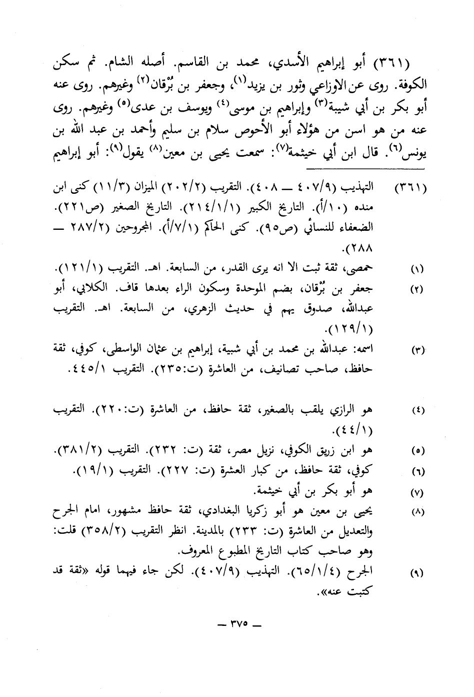 (¬8) يحيى بن معين هو أبو زكريا البغدادى، ثقة حافظ مشهور، امام الجرح والتعديل من العاشرة (ت: 233) بالمدينة. انظر التقريب (2/ 358) قلت: وهو صاحب كتاب التاريخ المطبوع المعروف.