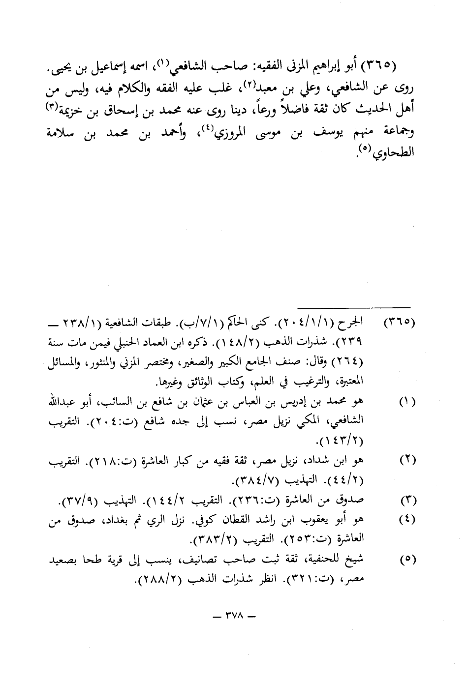 365 - الجرح (1/ 1/ 204). كنى الحاكم (1/ 7/ ب). طبقات الشافعية (1/ 238 - 239). شذرات الذهب (2/ 148). ذكره ابن العماد الحنبلى فيمن مات سنة (264) وقال: صنف الجامع الكبير والصغير، ومختصر المزنى والمنثور، والمسائل المعتبرة، والترغيب في العلم، وكتاب الوثائق وغيرها.