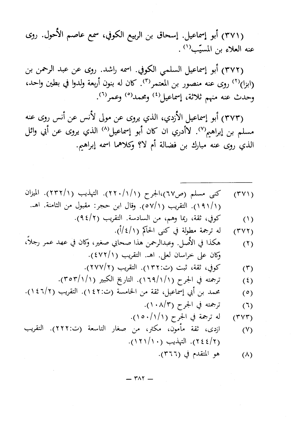 373 - أبو إسماعيل الأزدى، الذى يروى عن مولى لأنس عن أنس روى عنه مسلم بن إبراهيم (¬7). لا أدرى ان كان أبو إسماعيل (¬8) الذى يروى عن أبى وائل الذى روى عنه مبارك بن فضالة أم لا؟ وكلاهما اسمه إبراهيم.