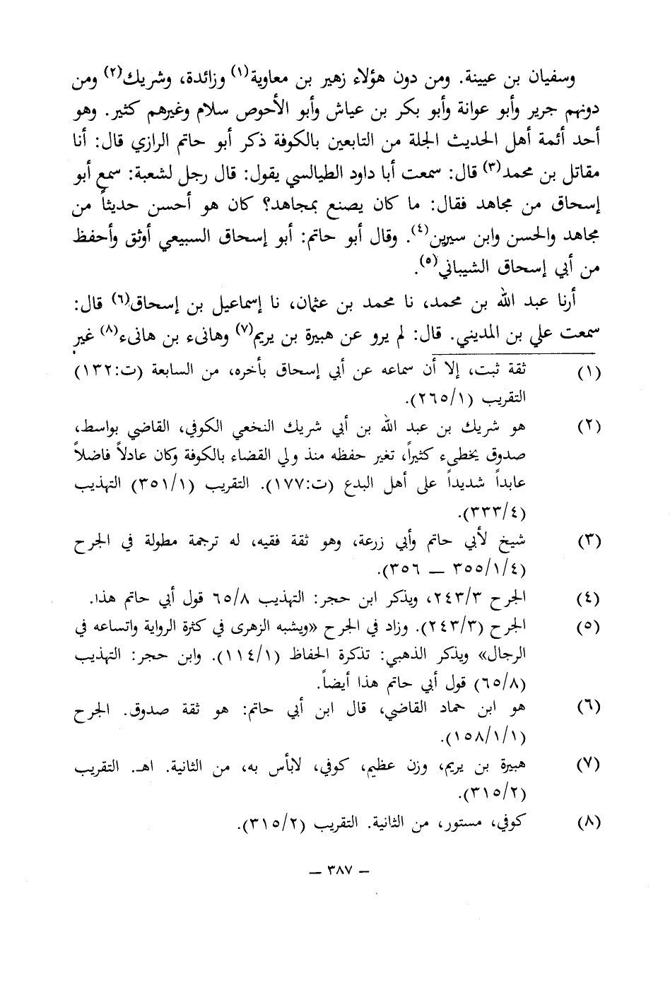 (¬1) ثقة ثبت، إلا أن سماعه عن أبى إسحاق بأخره، من السابعة (ت: 132) التقريب (1/ 265).