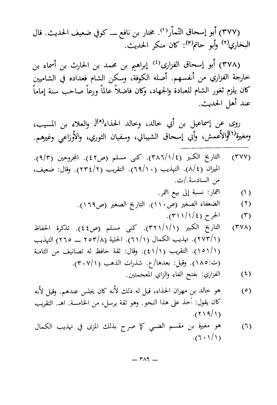 377 - أبو إسحاق التّمّار (¬1). مختار بن نافع - كوفى ضعيف الحديث. قال البخارى (¬2) وأبو حاتم (¬3): كان منكر الحديث.