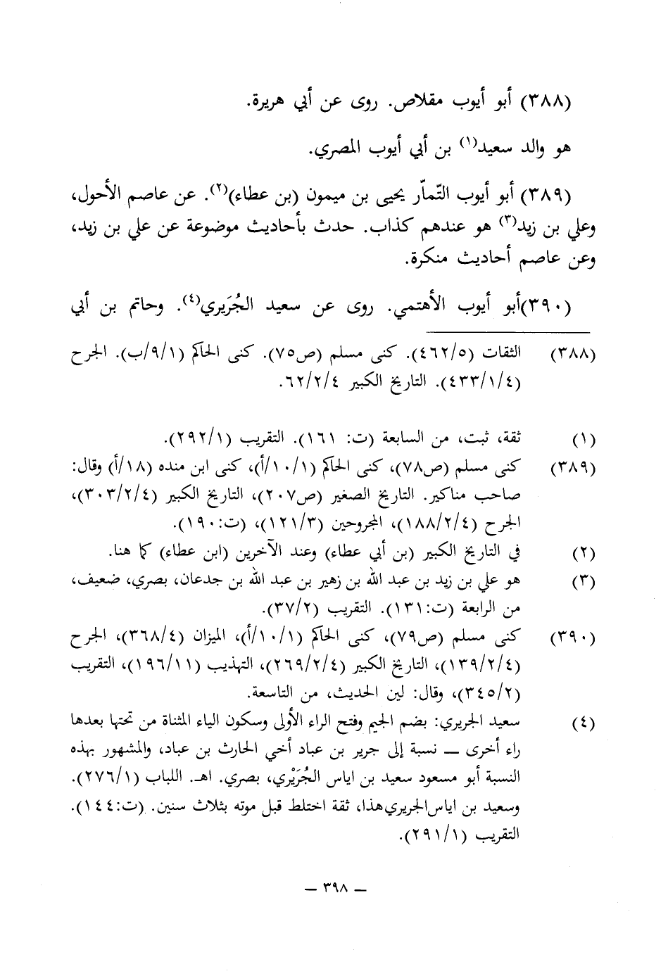 388 - الثقات (5/ 462). كنى مسلم (ص 75). كنى الحاكم (1/ 9/ ب). الجرح (4/ 1/ 433). التاريخ الكبير 4/ 2/ 62.