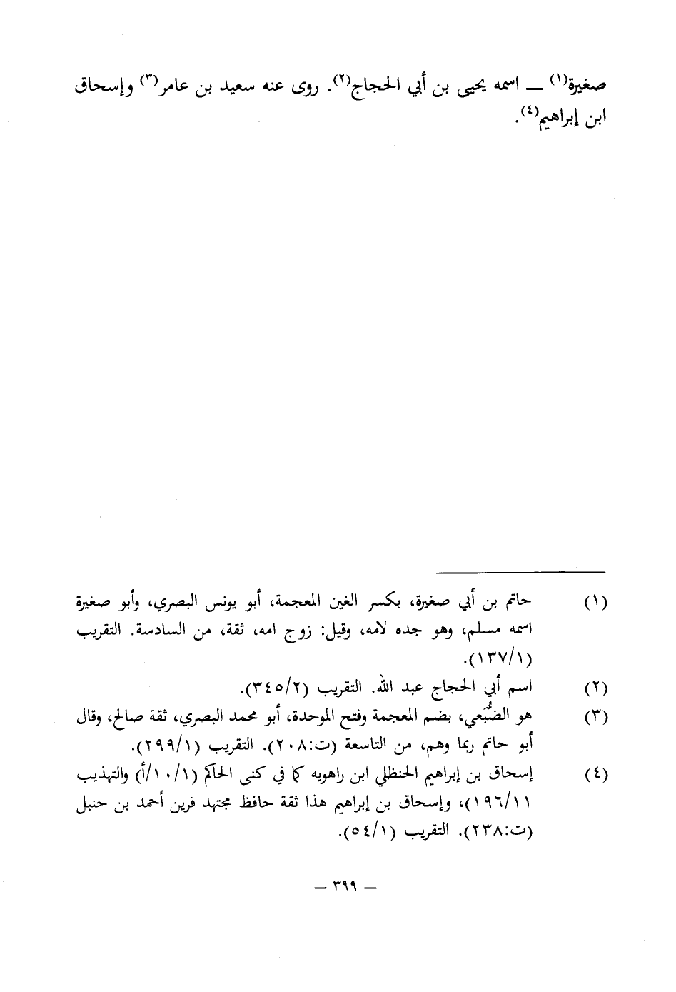 صغيرة (¬1) - اسمه يحيى بن أبى الحجاج (¬2). روى عنه سعيد بن عامر (¬3) وإسحاق ابن إبراهيم (¬4).