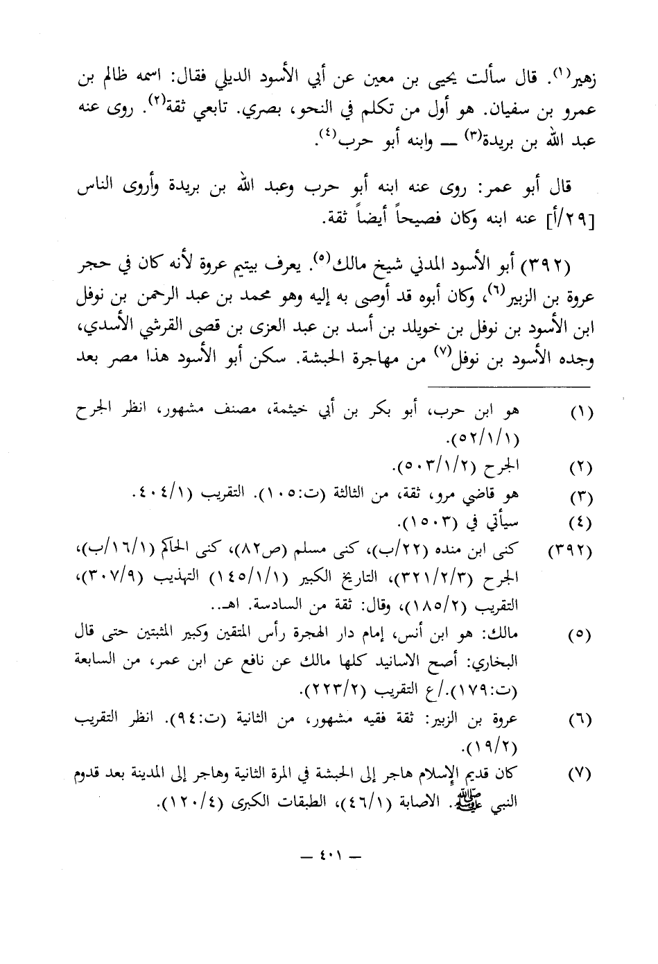 392 - كنى ابن منده (22/ ب)، كنى مسلم (ص 82)، كنى الحاكم (1/ 16/ ب)، الجرح (3/ 2/ 321)، التاريخ الكبير (1/ 1/ 145) التهذيب (9/ 307)، التقريب (2/ 185)، وقال: ثقة من السادسة. اهـ. .